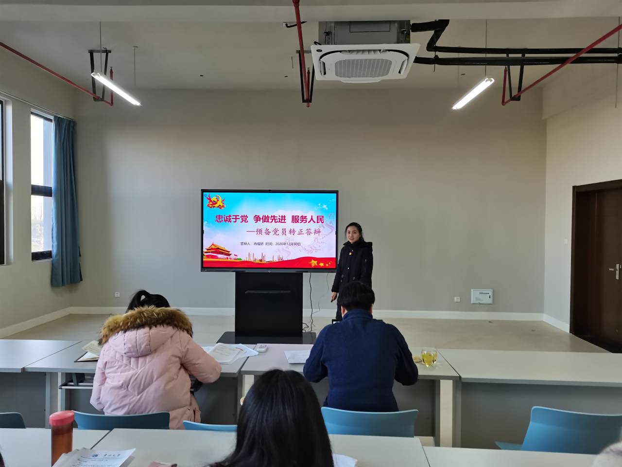 第一项议程,2020年下半年预备党员转正表决。会议严格按照预备党员转正程序执行。会议上,预备党员认真进行了预备期内表现的总结汇报,反省了自身不足,坚定了不断砥砺奋进的决心,真诚地希望能够成为一名正式的共产党员。党建联系人发表了相应的评价与期望。在充分讨论的基础上,采取无记名投票的方式进行表决。最终全体党员一致认为,胡晶晶、甄雅雯、冉福娇三位同志基本符合党员标准,同意上述同学的转正申请。