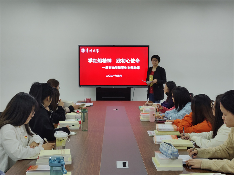 “红船精神”是中国革命精神之源,激励着我们党砥砺前行、发展壮大,是我们党立党兴党、执政兴国的宝贵精神财富。支部是党在高校的最基层组织,但也发挥着最重要的作用。在“两个一百年”奋斗目标历史交汇的关键节点,我们要深入学习贯彻习近平总书记在党史学习教育动员大会上的重要讲话精神,弘扬“红船精神”,在2021年,以卓有成效的支部工作向建党100周年献礼。