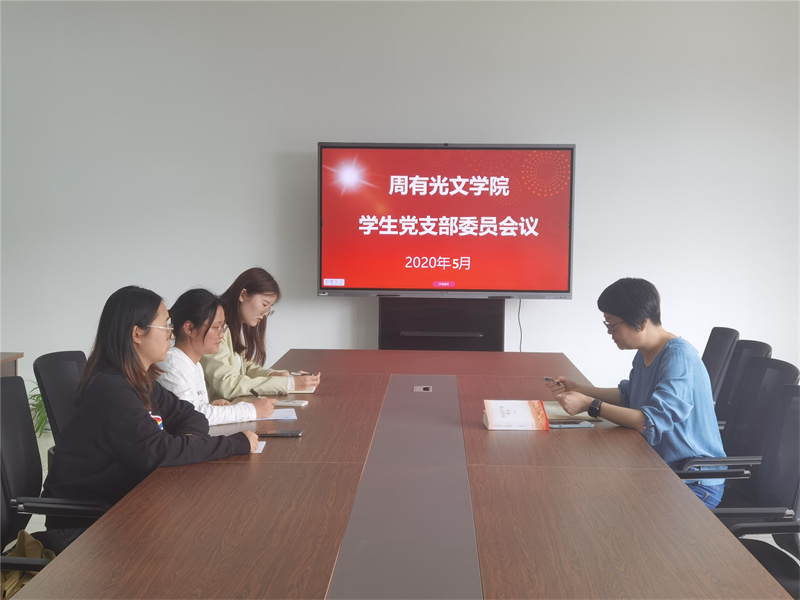 5月8日下午,吃瓜黑料 学生党支部在立言楼334会议室召开支委会,学生党支部书记杜焕、党员严佳丽、党员展望参加会议,会议由党总支书记焦洁庆主持。