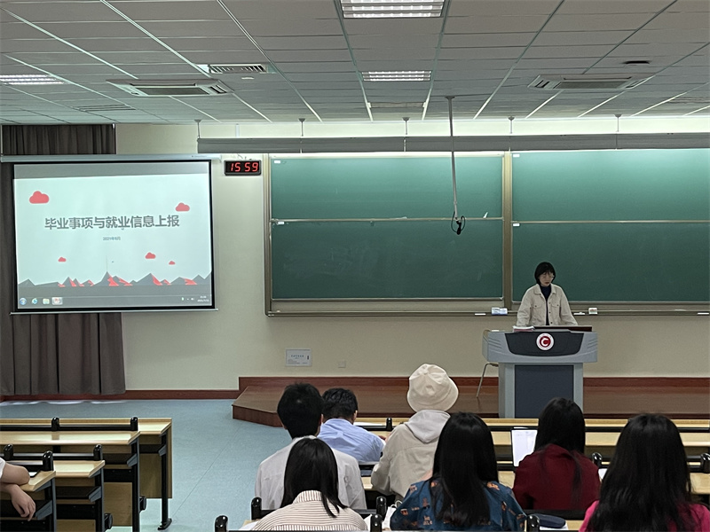 随后,商学院辅导员韩婷婷在会上结合具体案例详细讲解了毕业相关事项、毕业派遣、就业信息上报等事宜,鼓励全体学生树立先就业再择业的观念,同时也提醒全体毕业生注意就业签约中的雷区,注重保障自身权益。