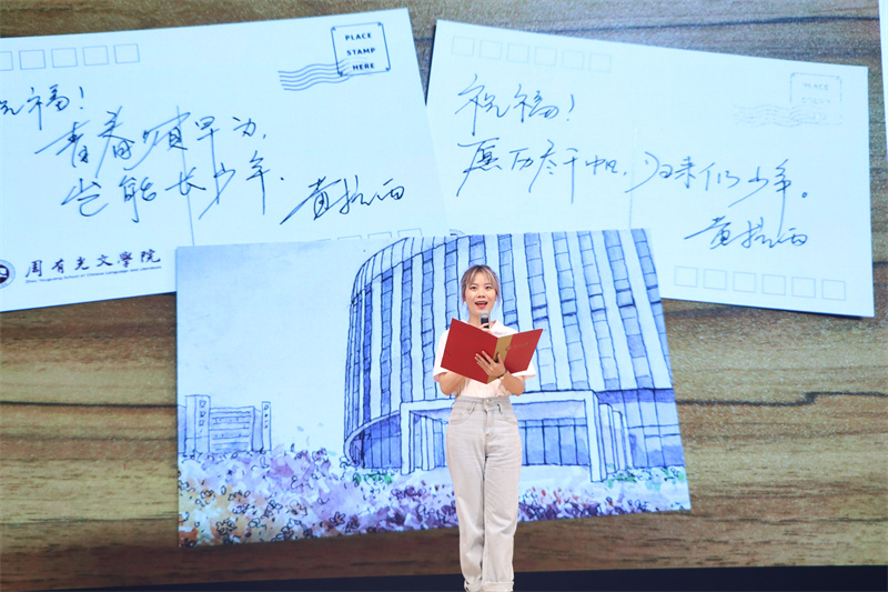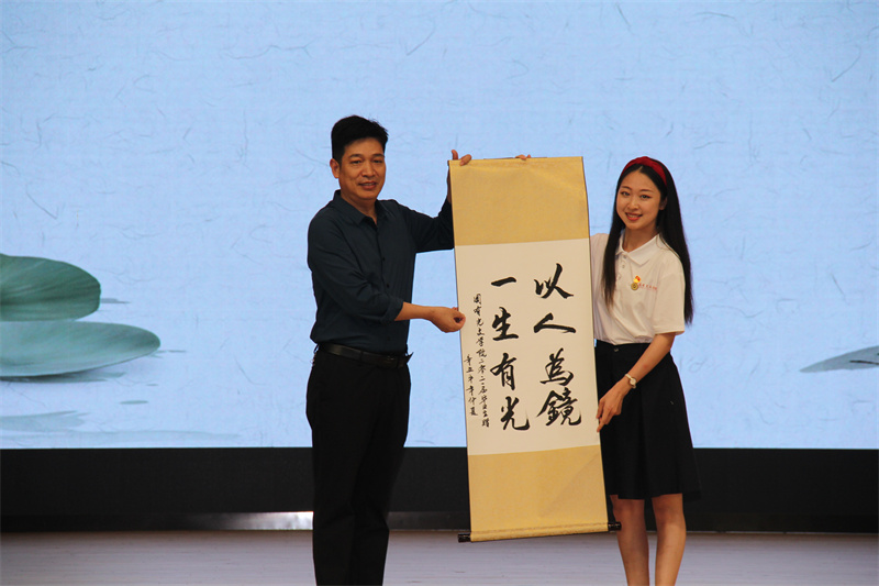 在“话·离别”篇章中,吃瓜黑料 学生党支部5名毕业生党员代表带来的原创诗歌朗诵《写在离别的渡口》、毕业生代表朱明磊的深情发言、周旋的教师寄语明信片选读、师生互赠纪念礼品,一一讲述了首届毕业生对母校的留恋和对在校生的美好祝愿。