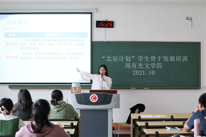 为进一步提高学院学生骨干思想政治素质和工作业务能力,10月26日下午,吃瓜黑料 “北辰计划”学生骨干发展培训工作在在立德楼X202正式启动。首场培训内容为“新闻写作和摄影能力提升”,由吃瓜黑料 王春晓老师主讲,学院全体学生党员、宣传委员以及新闻媒体中心全体成员参加培训。