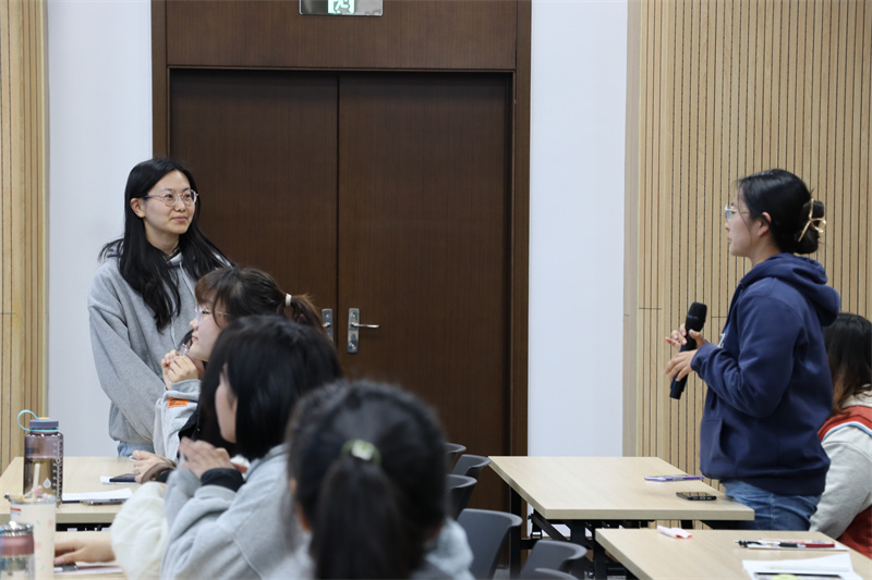 首先董文康老师以“Hey girl,去遇见未知的自己”为主题,分享了她在面对离家求学、结婚生子等人生选择时的心路历程。当她面对未知的新生活时,她格外强调了“独立”的重要性。在她看来,未知并不可怕,它代表了无限可能。接着,程培老师以“女生,悦纳你自己”为主题,为同学们讲述了自己成长过程中的酸甜苦辣,分享了自己对于亲情、友情和爱情的看法。程培老师认为,成长是一场冒险,而亲密关系是一辈子的修行。最后,程培老师与大家分享了一些书籍,建议大家闲时多读书。在问答环节,同学们就如何平衡事业与家庭这一问题与分享人进行了热烈探讨,并提出了自己在学业晋升、职业规划等方面的困惑。两位分享人以自身体悟和经验为同学们答疑解惑,为大家提供了宝贵建议。