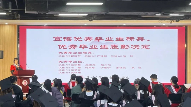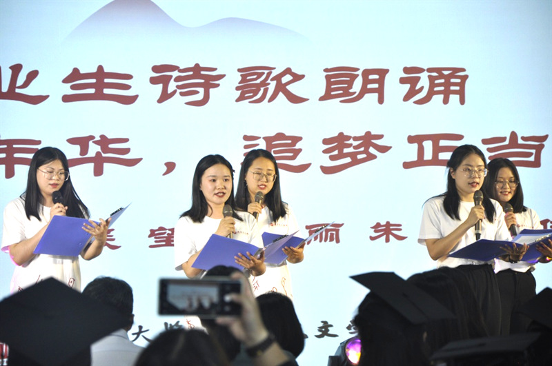 最后,在汉语182班罗明清同学的《感谢我们曾经来过》歌声中,毕业典礼圆满落幕。