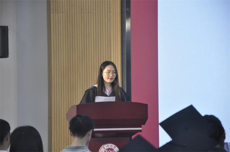 临别依依,言语万千。葛金华副院长以“感知世界变化,珍惜时间,准备远行!”为题为毕业送上临别寄语。他在讲话中首先为大家分析了当下这个看似平常却早已发生巨大变化的不一样的世界。我们该何去何从?是他与大家共同分享的主题。他希望毕业生要有感知世界变化的敏感性和敏锐度,要把感知、了解、参与和应对变化当作常态。既然每一个人都不能置身于变化之外,那就要好好为一生的远行做好最充分的准备。同时,他强调文学经典有着独特的超越性和永恒性,是弘扬优秀中华传统文化的重要内容,这是精神的家园,这是灵魂的寄托。他希望全体毕业生放下身段、放平心态,抓住机遇,牢记“博雅、融通、存诚、致远”的院训,用努力争取未来,做到“一生有光”。