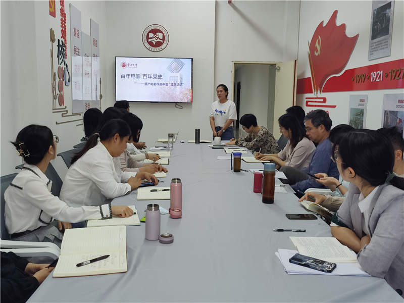 9月21日下午1:00,吃瓜黑料 分工会在立言楼227室举办了“百年电影 百年党史”专题学习活动。活动由党支部书记付用现主持,由青年教师王春晓主讲。院党总支书记焦洁庆、院长葛金华以及部分教工参与了学习和研讨。