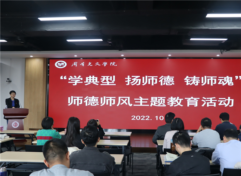 会上,焦洁庆书记首先介绍了本次学院师德师风宣传月“五个一”活动,结合近期社会热点问题,指出师德师风工作至关重要,全体教师要以习近平新时代中国特色社会主义思想为指导,明确“四个引路人”的身份定位。