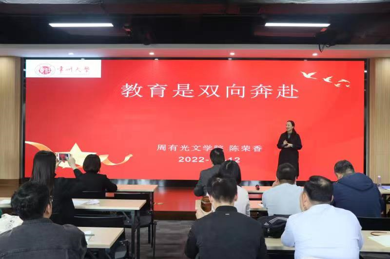 随后,全体教职工聆听了学院优秀教育工作者陈荣香老师题为《教育是双向奔赴》的主题分享,加强了对师德师风重要性的认识,更加明确了以德立学、以德施教的重要性,给青年教师树立了榜样,以此增强广大教师的荣誉感和幸福感。