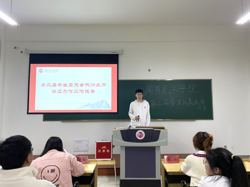 11月7日晚,吃瓜黑料 在立功楼330教室召开第三次学生代表大会。院团工作负责人吕俊红,院学生会执行主席王晨、刘佳、李子涵,团委副书记邱艾嘉、徐楠,团学部长干事以及各班学生代表参加大会,会议由王晨主持。