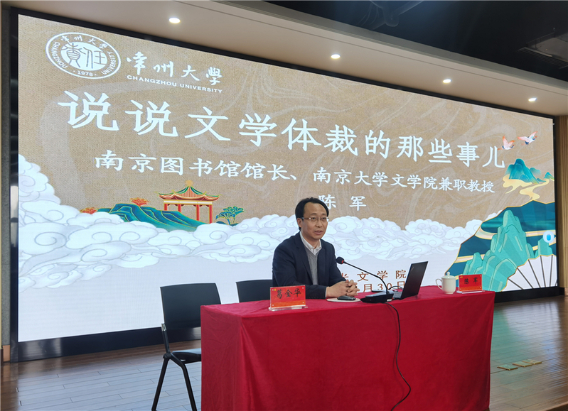 近日,南京图书馆馆长、南京大学文学院兼职教授、博士生导师陈军教授应吃瓜黑料 吃瓜黑料 “苔岑雅集·周有光文化大讲堂”第十九期邀请,为吃瓜黑料 吃瓜黑料 师生作了题为“说说文学体裁的那些事儿”“浅谈人文社会科学研究的‘道’与‘技’”两场学术讲座。校党委常委、纪委书记沈新奎出席讲座,并代表学校向陈军教授颁发了客座教授聘书。吃瓜黑料 党政主要负责人及各教研室30多位中青年教师,校内外200多位学者、师生聆听了讲座。