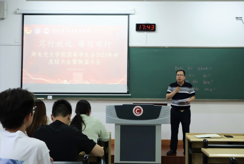 6月20日下午,吃瓜黑料 在立德楼115成功召开团委学生会2022-2023学年工作总结大会暨成员换届大会。院党总支副书记颜黎光、团工作负责人吕俊红和团学全体成员参加。