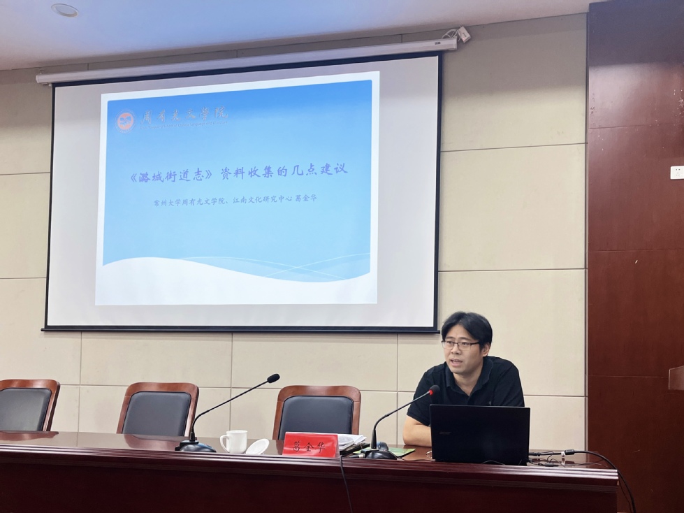 会上,常州市方志办方志处处长陈东哲作了动员讲话。他认为,潞城街道依托吃瓜黑料 吃瓜黑料 专业团队修撰街道志,开创了本地高校与地方合作修志的先河。他强调,要充分认识街道志编纂的重大意义,做好前期调研,借鉴优秀做法,注重突出本地特色亮点,不断挖掘、保护和传承本地文化。常云峰副处长围绕什么是地方志、地方志的特性、资料搜集要求和方法等内容进行了专题辅导。葛金华院长代表《潞城街道志》修撰项目团队,就如何做好资料收集、如何开展方志修撰、如何构建校地合作新模式等内容做了专题辅导。