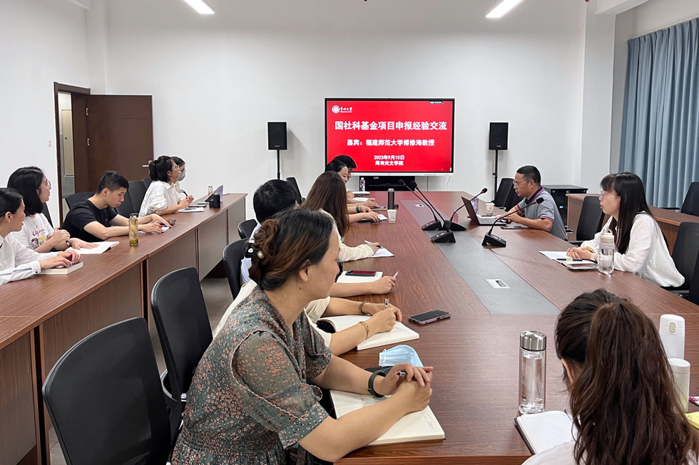 辅导中,傅修海教授从评审专家和研究人员双重身份的视角切入,结合自身对社科基金的理解、对申报工作的认识和对申报工作的实践等内容分享了国社科基金申报的“技与道”。他鼓励大家摆正心态,做好自己的研究,积极投入,迎接挑战。