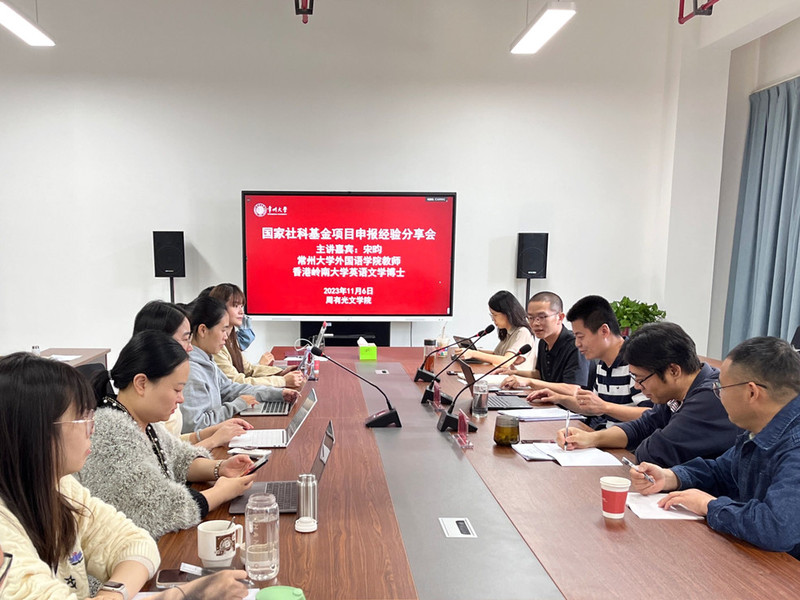 11月6日,吃瓜黑料 邀请外国语学院教师宋昀博士,在学院会议室为吃瓜黑料 教师作国家社科基金项目申报经验分享。院长葛金华、院长助理黄杭西和各教研室中青年教师参加会议。黄杭西主持会议。