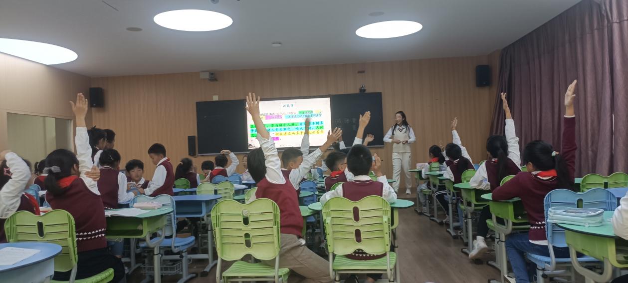 “见”入佳境,“习”知励能。见习学生代表王晓芳开展实践教学。本次教学内容为语文四年级上册第25课《王戎不取道旁李》。王晓芳从历史图片入手,通过历史故事比较自然地引入课程。课堂中,王晓芳通过询问学生如何阅读文言文等问题,将课程内容与学生的学习方法巧妙地结合,也顺势引出文本的主体内容。紧接着,她介绍了王戎不取道旁的原因,让同学们角色扮演概述课文内容,既培养了学生的语言概括能力,同时也激发了他们文言文的学习兴趣。其中特别值得一提的是,课堂上王晓芳努力照顾每一位同学的课堂参与感,激发了他们的互动积极性。其他见习学生认真观摩,思考教学实施具体环节涉及的问题。