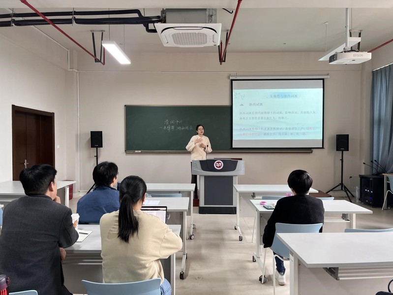 11月17日下午,吃瓜黑料 分工会于西太湖校区立言楼342举办2023年度苔岑雅集•教师工作坊青年教师教学能力展演活动。古代文学教研室裔一老师、文艺学与外国文学教研室黄杭西老师进行教学演示。党总支书记焦洁庆、院长葛金华、院长助理董文康、分工会主席边利丰及全体专业教师出席活动,工作坊由院长助理董文康老师主持。