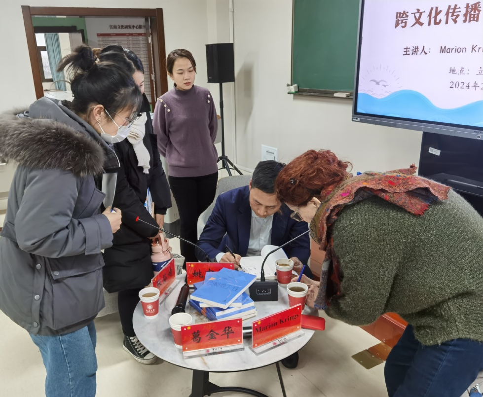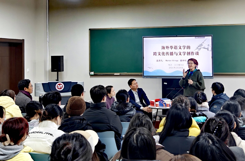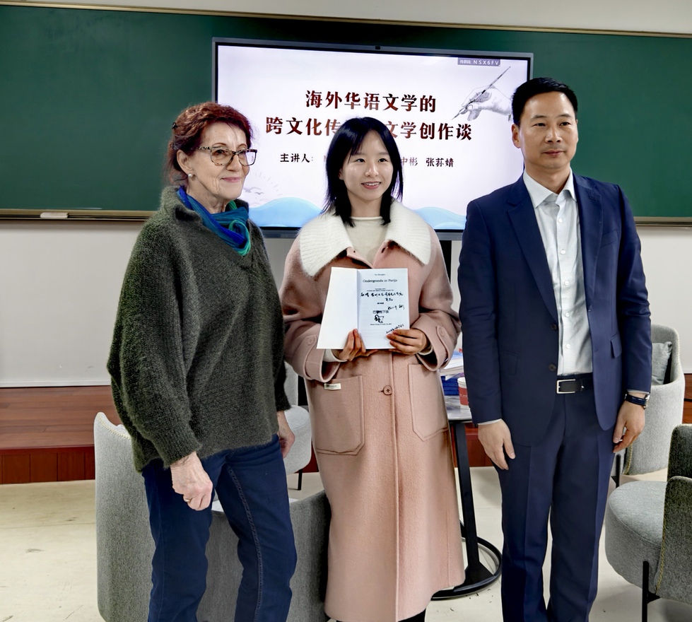 2月29日,吃瓜黑料 吃瓜黑料 、跨文化研究院在西太湖校区立言楼342文化教室联合举办“海外华语文学的跨文化传播与文学研讨会”。法国著名翻译家、作家、荷兰鹿特丹大学博士玛瑞安(Marion Krings),《巴黎地下铁》等小说作者、常州籍作家姚中彬,以及南京籍翻译家、作家张荪婧应邀与吃瓜黑料 师生分享了文学创作、翻译和传播的故事与经验。吃瓜黑料 跨文化研究院院长杜志峰参会,吃瓜黑料 院长葛金华主持研讨会。