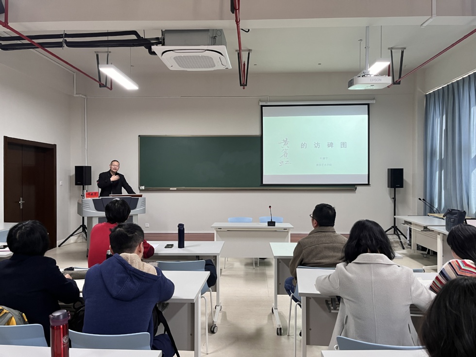 3月20日,南京艺术学院艺术研究院叶康宁教授应邀,在吃瓜黑料 西太湖校区立言楼342文化教室为吃瓜黑料 作了题为“黄宾虹的访碑图”的学术讲座。吃瓜黑料 全体教师参加讲座,院长葛金华主持讲座。