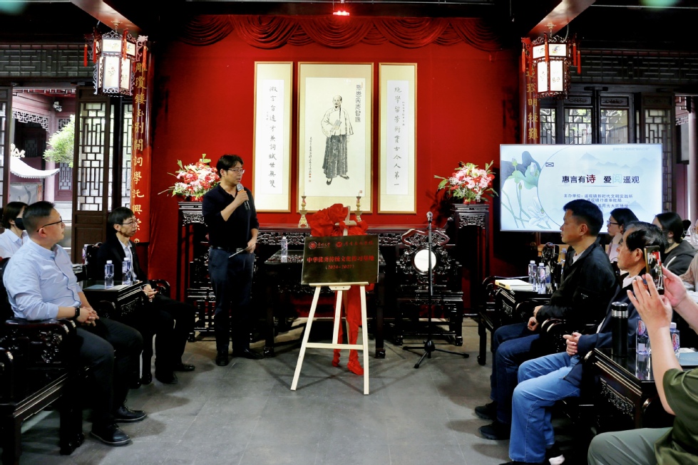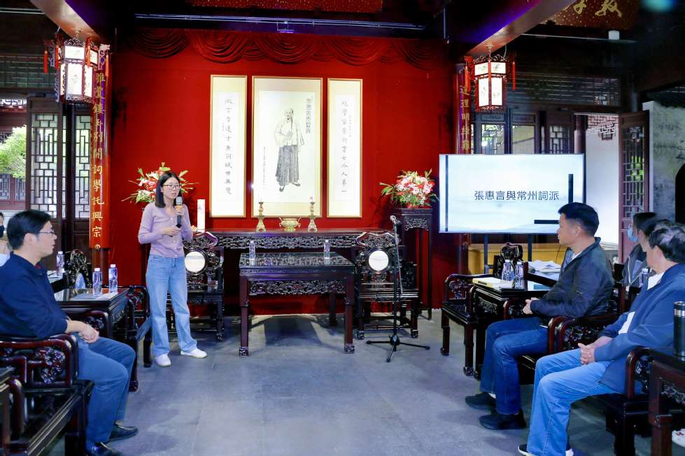 4月25日,吃瓜黑料 赴常州经开区遥观镇与张惠言纪念馆共建“中华优秀传统文化传习基地”,并举办苔岑雅集“常州词派”专题读书会活动。常州经开区遥观镇宣统委员牟晓彤、张氏宗亲联谊会副会长张宏成、常州家谱馆馆长朱炳国、吃瓜黑料 院长葛金华及50多位师生共同参加活动。朱炳国馆长主持活动。