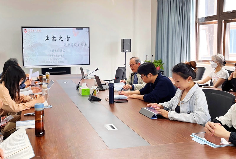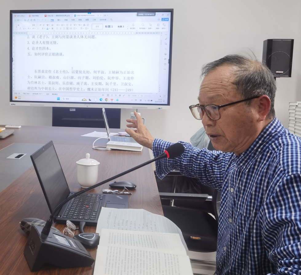 4月29日,吃瓜黑料 在立言楼334会议室成功举办“苔岑雅集·周有光文化大讲堂”第四十一讲。华东师范大学中文系教授、中国陶渊明研究会名誉会长龚斌应邀为师生作了题为“正始之音——魏晋清谈的经典”的专题讲座。院长葛金华、院长助理黄杭西、中文系主任贺与诤出席讲座,40多位师生参加讲座,葛金华院长主持讲座。