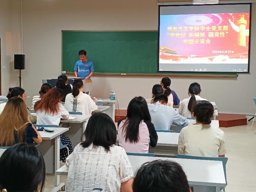 5月22日,吃瓜黑料 学生党支部于立言楼342召开“学党纪 明规矩 强党性”专题交流会。本次会议由胡杰然主持,学生党支部书记张乙与全体学生党员参会。