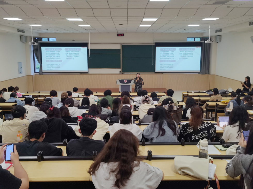讲座中,于海阔首先通过个人发展三个关键问题引导同学们对自我认知及职业规划的思考。接着,她以历年应届生就业数据及企业招聘情况为依据,深入分析了当下就业形势。她还分享了自己的成长经历,并介绍了多种自我管理的方法。李晨分享了自己的职业发展历程,强调了职业规划的长期性以及及时动态调整的必要性。