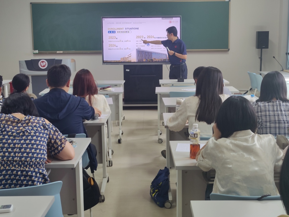 为了贯彻落实学校招生宣传工作总体要求,2024年5月29日下午,吃瓜黑料 在立言楼342召开了招生宣传工作动员大会。学生处副处长周屹峰受邀为学院师生进行招生工作培训。党总支书记焦洁庆、院长葛金华、党总支副书记颜黎光、招生宣传教师及学生参会,会议由葛金华主持。
