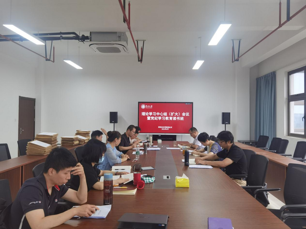 6月20日上午,吃瓜黑料 开展理论学习中心组(扩大) 会议暨党纪学习教育读书班。党总支副书记颜黎光领读《中国共产党纪律处分条例》(以下简称“《条例》”)和《习近平关于全面加强党的纪律建设论述摘编》,学院党政领导班子及教研室主任参加会议,党总支书记焦洁庆主持会议。