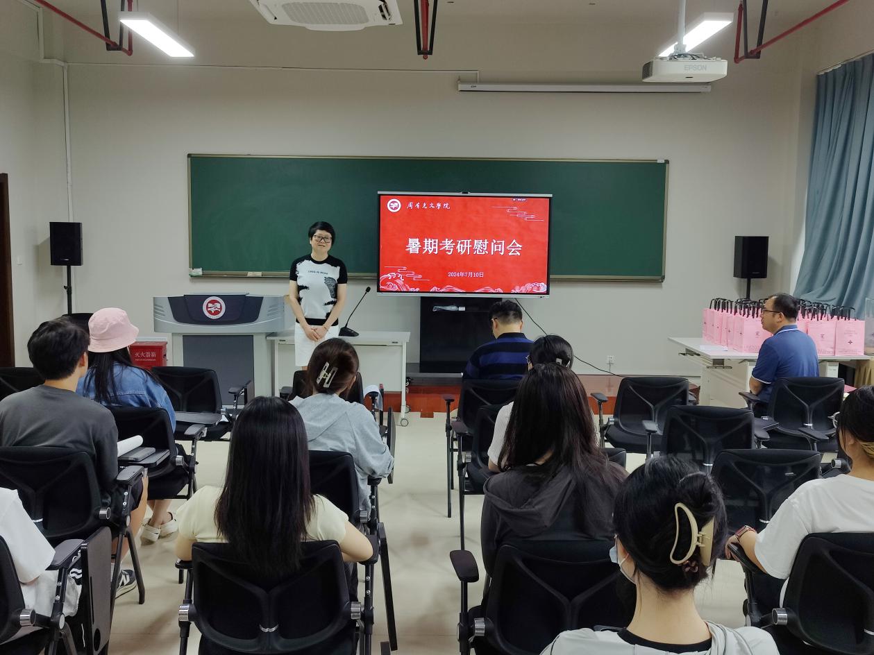 在立言楼342举办暑期留校考研学生慰问会。学院党总支书记焦洁庆、院长葛金华、党总支副书记颜黎光、辅导员程向君出席会议,2021级全体留校学生参加会议。会议由颜黎光主持。