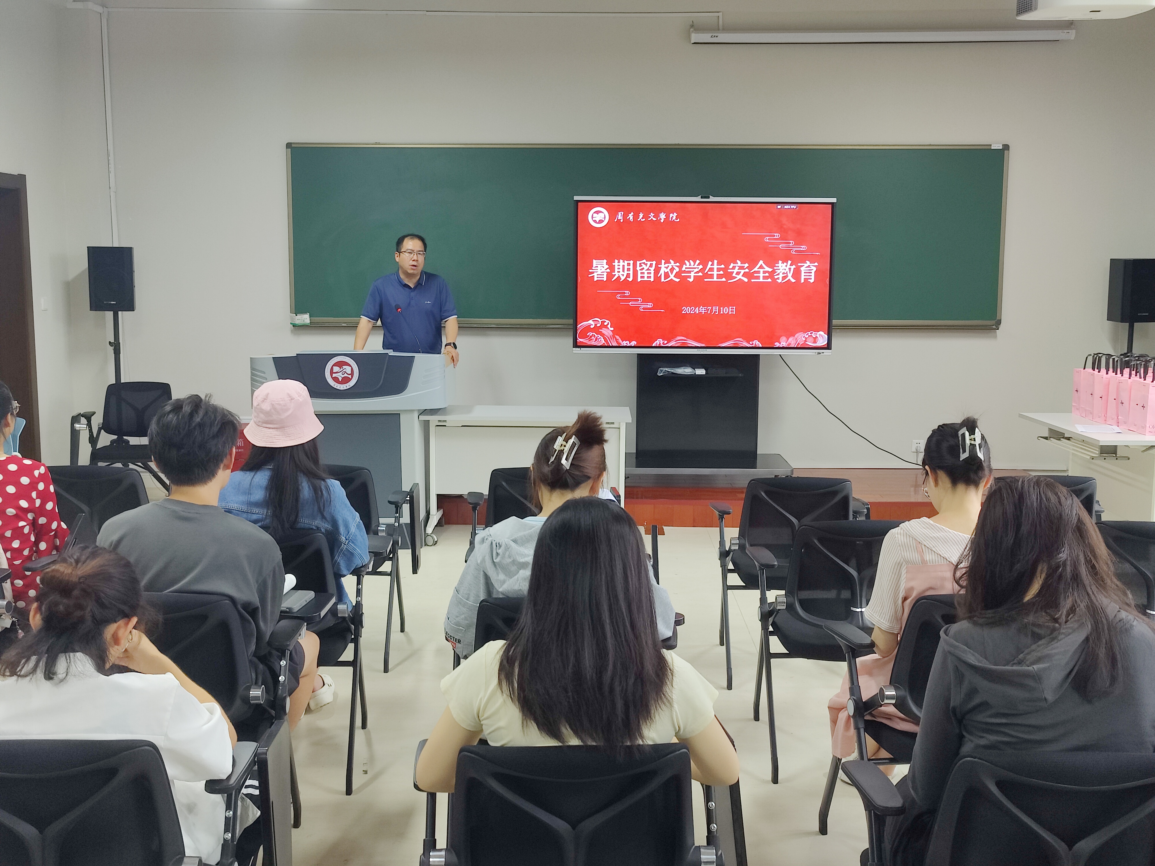 7月10日上午,吃瓜黑料 在立言楼342会议室召开了暑假留校学生安全教育会议。学院党政领导出席会议,辅导员老师及全体留校学生参加会议。会议由党总支副书记颜黎光主持。