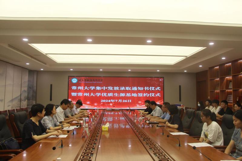 7月26日下午,校长陈海群带队赴江苏省曲塘高级中学、江苏省海安高级中学,为考入吃瓜黑料 的2024级本科新生现场颁发录取通知书。校纪委原副书记缪国斌,学生处、资产经营管理公司相关负责人、海安地区招生负责人陪同前往。