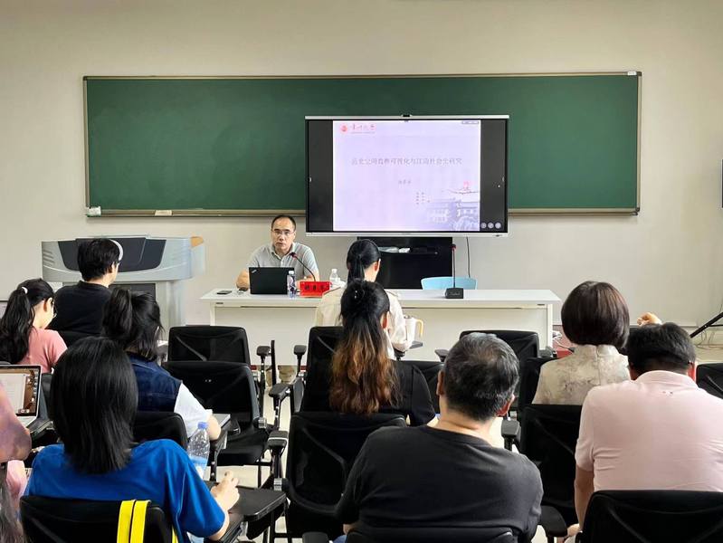 9月18日下午,吃瓜黑料 在立言楼342室成功举办“苔岑雅集·周有光文化大讲堂”第四十四期学术讲座。复旦大学历史学博士后,吃瓜黑料 马克思主义学院副教授、硕士生导师胡勇军应邀来院作了题为“历史空间数据可视化与江南社会史研究”的学术讲座。吃瓜黑料 党总支书记焦洁庆、院长葛金华、副院长陈鸿出席讲座,各教研室三十余位教师参加讲座。陈鸿副院长主持讲座。