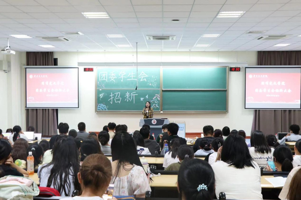 9月20日晚,吃瓜黑料 在立德楼七阶教室举办第四届团委学生会招新大会。团委工作负责人程向君老师、主席团成员、各部门部长及全体新生参加会议。会议由学生会主席李衬主持。