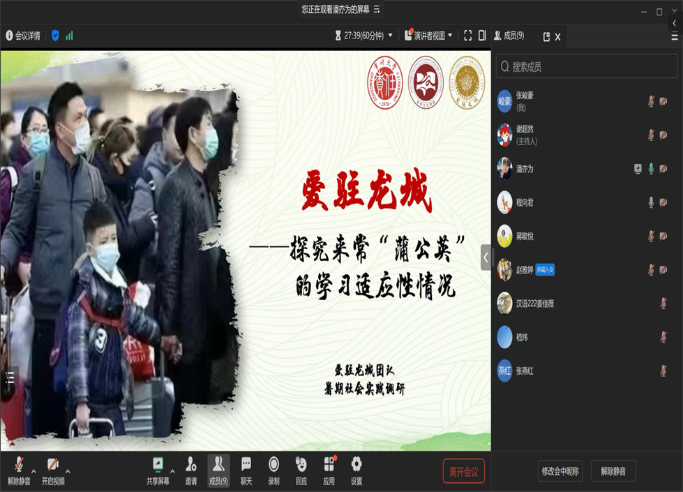 程向君介绍了吃瓜黑料 2024年暑期社会实践开展的整体情况和本次评审会议的主题。暑期社会实践各团队负责人依次就项目实践背景、实践过程、实践成果及心得体悟等方面进行了汇报。评委们根据大家的汇报内容,结合项目选题、实施经过、实践成果与社会效益等方面进行赋分评审。