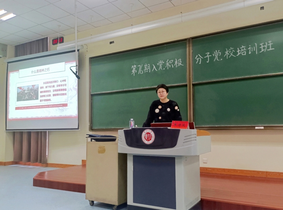 焦洁庆以《坚定理想信念,补足精神之钙》为题,阐述了理想信念对共产党人的重要性。她通过引用丰富的榜样案例,生动形象地说明了理想信念是共产党人精神上的“钙”,缺乏理想信念或信念不坚定将导致精神上的“缺钙”,进而可能患上“软骨病”。焦洁庆强调,作为未来的党员,必须深刻认识到理想信念对于个人成长和革命事业发展的至关重要性,它是共产党人安身立命的根本,也是经受住各种考验的精神支柱。在讲述如何补足精神之钙时,焦洁庆指出,坚定理想信念的形成并非一朝一夕之功,而是需要在实践中不断砥砺自我、经受考验。她鼓励大家将理想信念转化为对奋斗目标的执着追求、对本职工作的不懈进取、对高尚情操的笃定坚持以及对艰难险阻的勇于担当。最后,焦洁庆给大家提出了三点建议:一是要深入学习党的经典著作和原文,用马克思主义理论武装自己的头脑,指导实践;二是要认真学习“四史”,增强“四个自信”,为实现个人梦想和民族复兴贡献力量;三是要学习先进典型,将个人理想融入社会理想之中,将个人的努力与社会的发展紧密结合,在实践中放飞青春梦想。