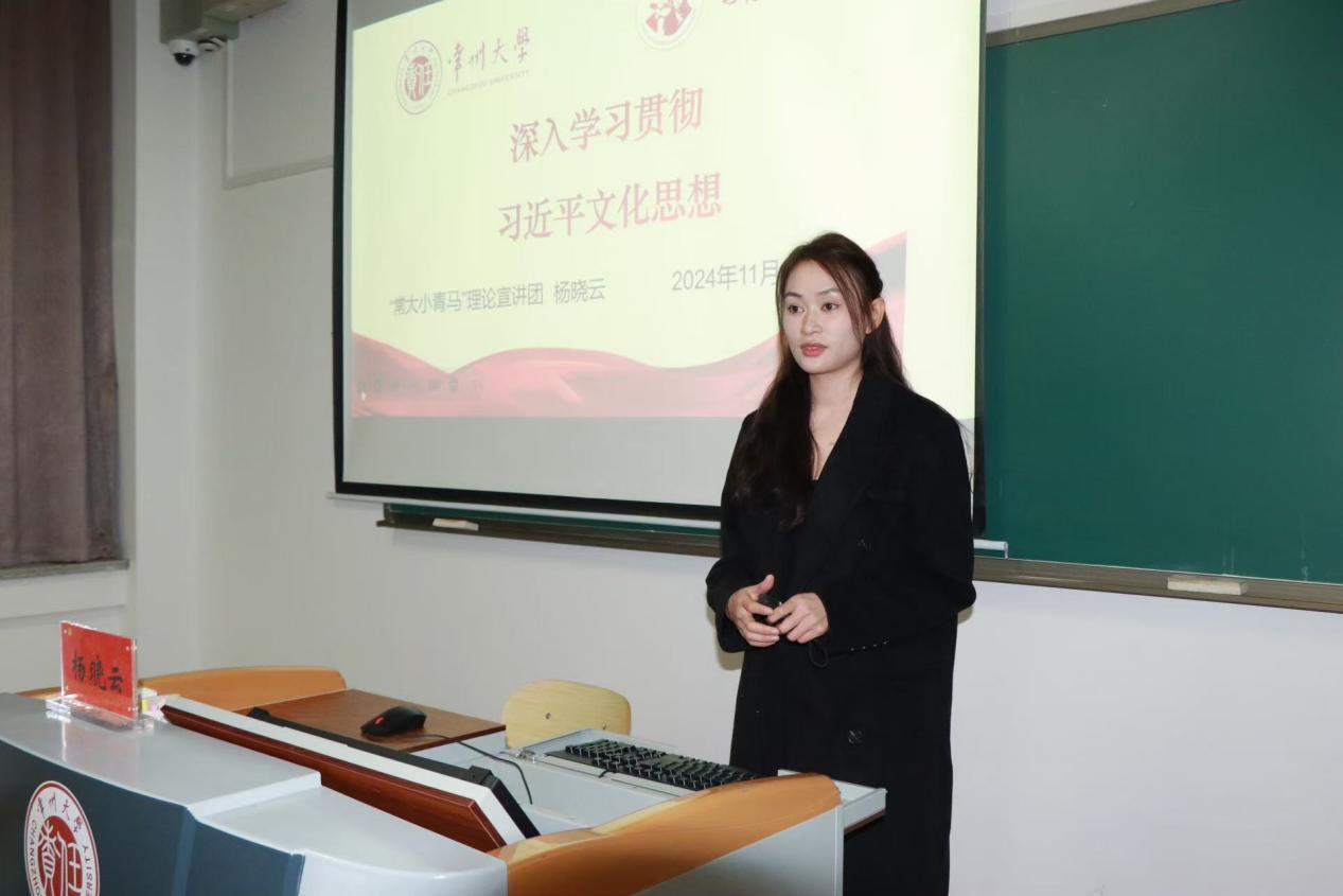 杨晓云以党的十八大为切入点,系统梳理了习近平文化思想的形成背景和丰富内涵,并详细讲解了习近平文化思想“明体达用,体用贯通”的鲜明特征及其蕴含的中国传统哲学智慧。她指出,坚定文化自信就必须走自己的路,走中国特色社会主义道路,要将马克思主义时代化、中国化。她鼓励同学们要积极践行社会主义核心价值观,了解中华优秀传统文化,为实现中华民族伟大复兴的中国梦贡献智慧和力量。