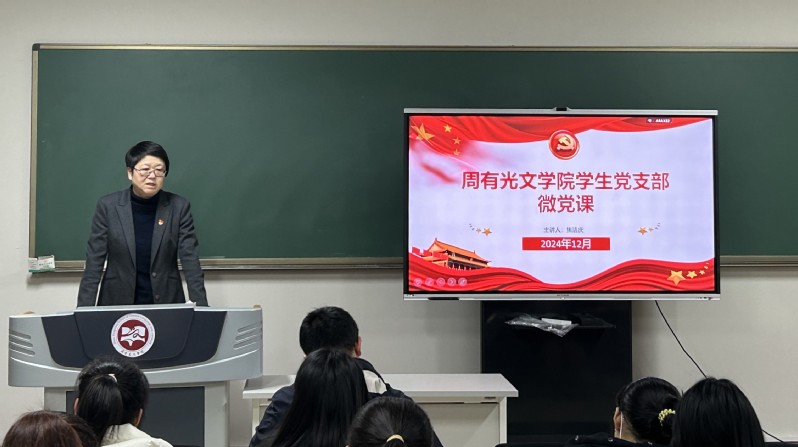 课上,焦洁庆援引张载“为天地立心,为生民立命,为往圣继绝学,为万世开天平”的宏愿向全体学生党员分享“立大志”的精神。督促学生党员反思自身志向,做到将入党誓词“为共产主义事业奋斗终身”真正理解透彻,从而内化于心、外化于行。焦洁庆强调了“勤读书”的重要性。她指出,对中文系的学生而言,书籍是知识的源泉与底气所在。同时以战争岁月毛泽东身居窑洞仍坚持读书的例子,激励学生党员要持之以恒地阅读,从书中汲取力量。此外,焦洁庆着重强调了奉献精神,认为党员身份意味着更高的追求与更多的责任。她要求党员同志在精进学术的同时,更应思考自己为集体、学院、社会做出的贡献,杜绝“双面人”行径。