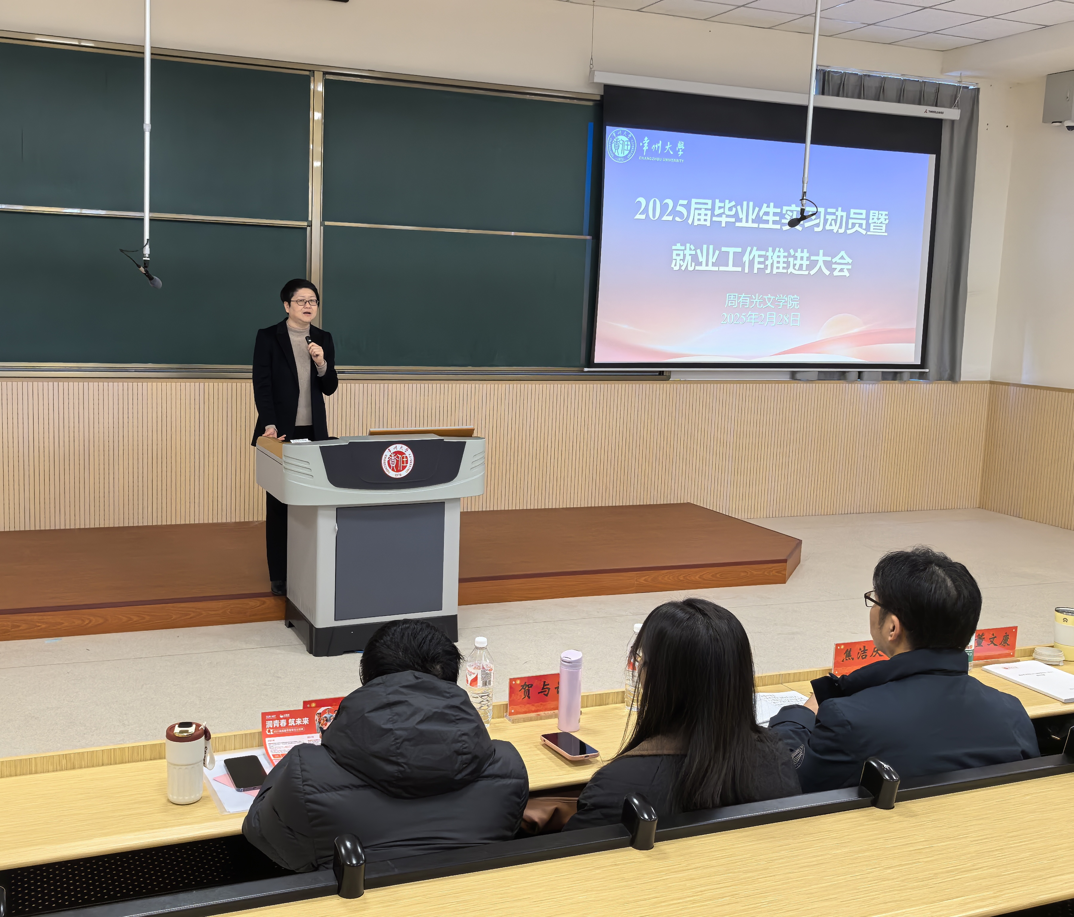 2月28日下午,吃瓜黑料 在西太湖校区立功楼一阶成功举办2025届学生毕业实习动员暨就业工作推进大会。学院党总支书记焦洁庆、院长葛金华、院长助理董文康、中文系系主任贺与峥、毕业班班主任、辅导员及全体25届毕业班学生参加会议。会议由党总支副书记嵇炜主持。