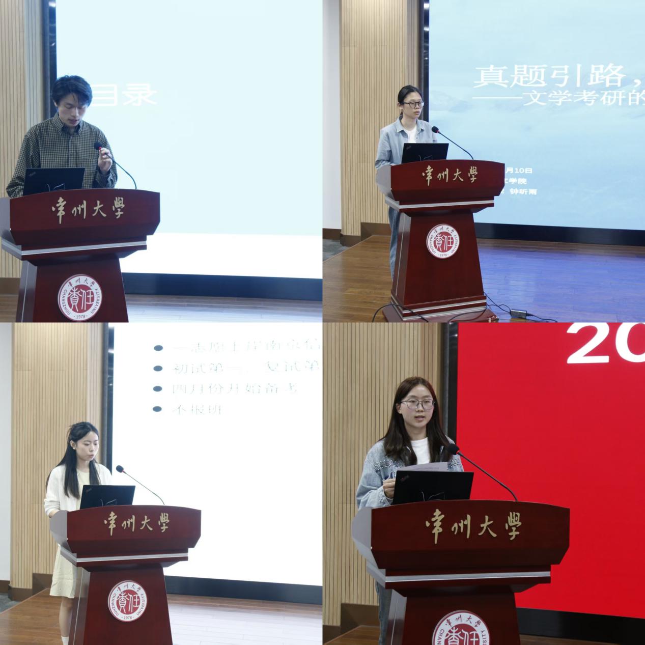 学生代表分享了考研经验。他们以筛选目标院校为切入点,从招生政策、报录比、学科排名等方面多维度进行介绍。他们结合备考时的心路历程,鼓励大家合理制定计划并严格执行,做到坚定信心、克服压力、保持动力。此外,他们还分享了收集资料、整理笔记和复试的技巧,鼓励同学们积极向老师请教,充分利用学校资源。