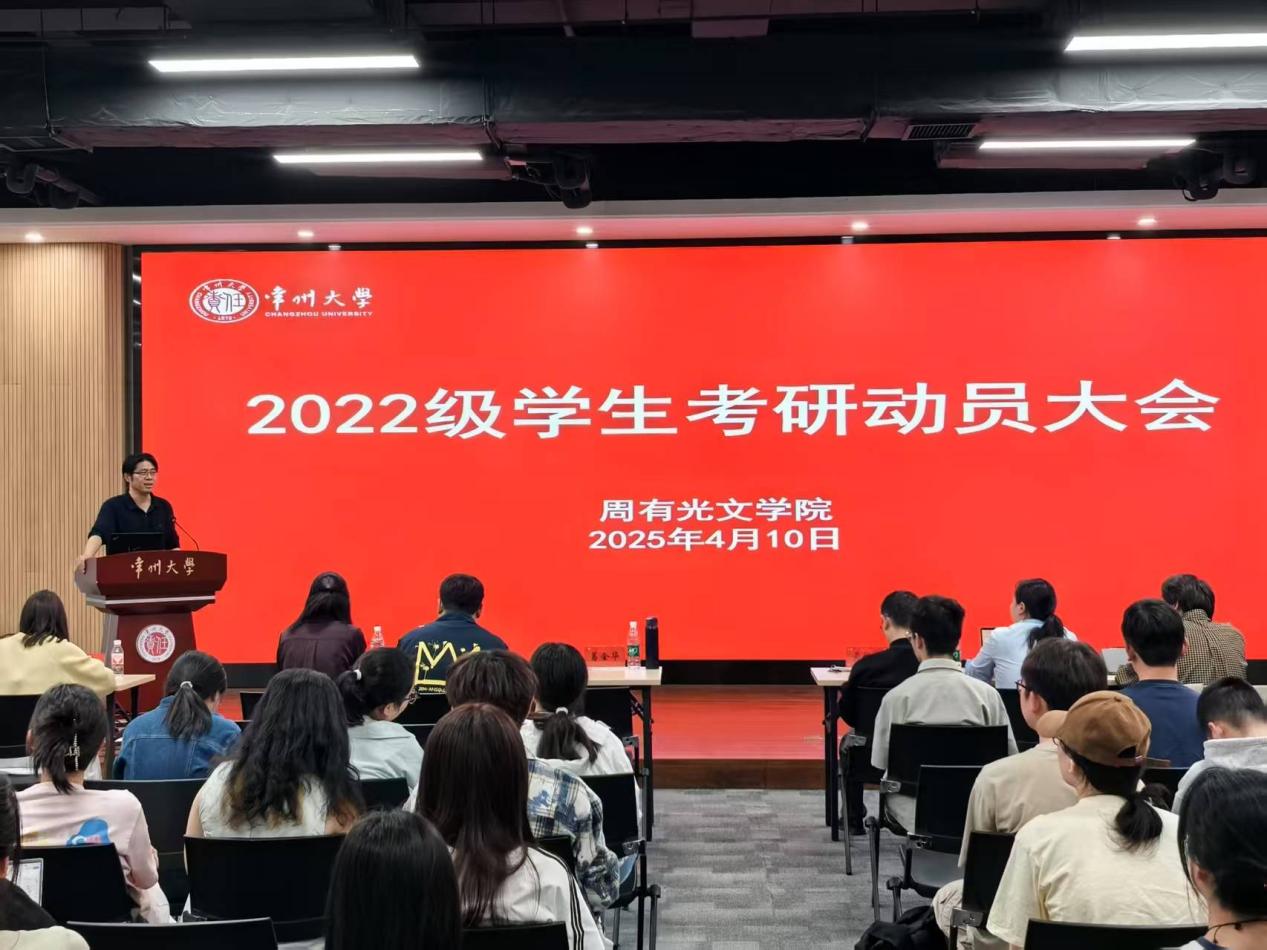 4月10日晚,吃瓜黑料 于立言楼458会议室举办2022级学生考研动员大会。院长葛金华、院长助理、文艺学与外国文学教研室主任黄杭西、古代文学教研室主任王风丽、现当代文学教研室主任何霞、语言学教研室主任刘磊、考研学生代表张冉冉、张梦婷、钟昕雨、徐陆延以及全体2022级学生参加会议。会议由院学工办主任张燕红主持。