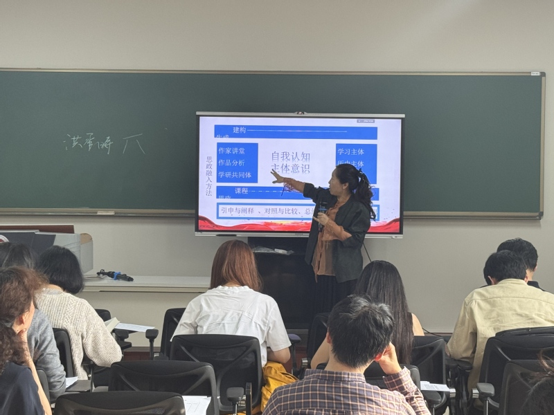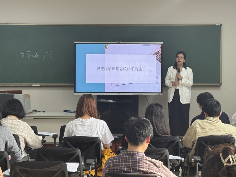 靳瑞芳以鲁迅研究为例,分享了如何在文学史教学中“同向同行,协同育人”,围绕文化浸润、历史视野、价值引领和精神塑造四个维度,对文学文本展开细致分析。王丹结合校课程思政示范课程《现代汉语》,介绍了课程的设计思路,以及近年来持续建设、改进的过程。通过以赛促学、线上线下资源整合等方式,使学生了解中国语言文化的悠久历史、激发学生热爱祖国语言文字的情感。针对思政示范专业建设等议题,贺与诤也结合自身的课程实施分享了课程建设的思路。