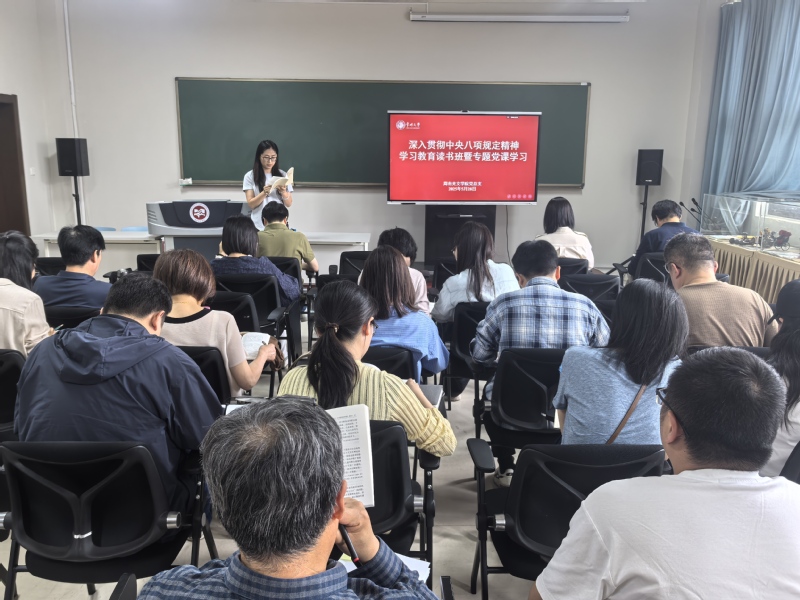 5月28日下午,吃瓜黑料 教工党支部于立言楼342会议室,开展深入贯彻中央八项规定精神学习教育读书班暨专题党课学习活动。学院领导班子和全体教工党员参加学习。