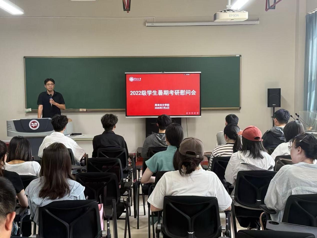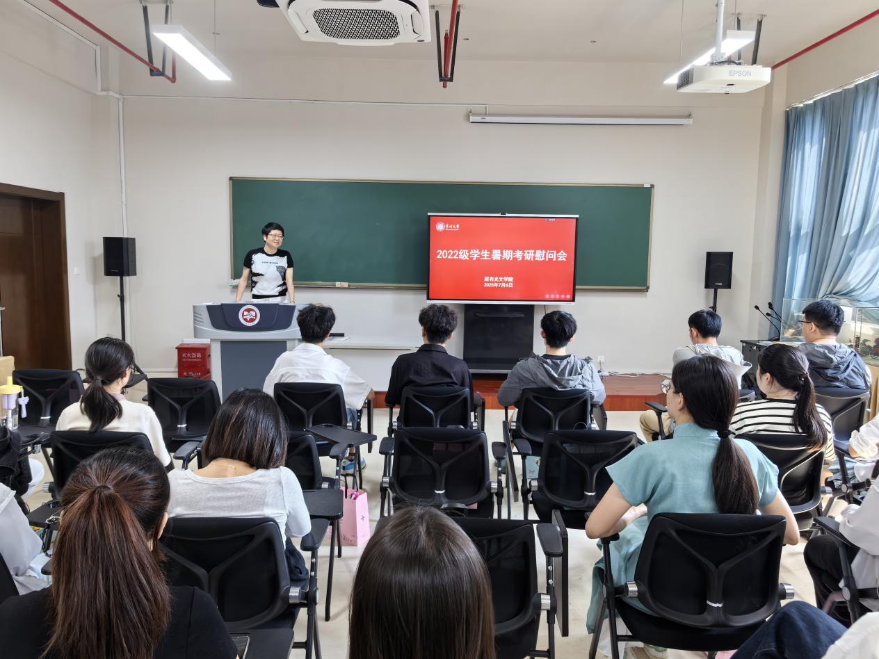 7月6日下午,吃瓜黑料 在立言楼342举办暑期留校考研学生慰问会。学院党委书记焦洁庆、院长葛金华、副书记嵇炜出席会议,2022级全体留校学生参加会议。会议由辅导员张燕红主持。