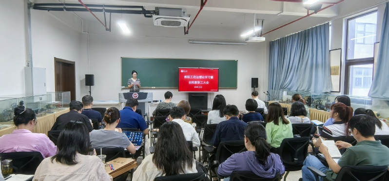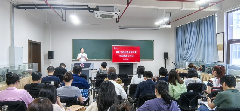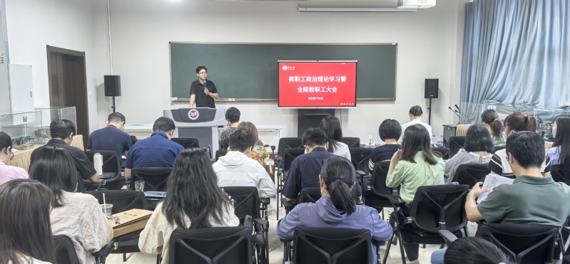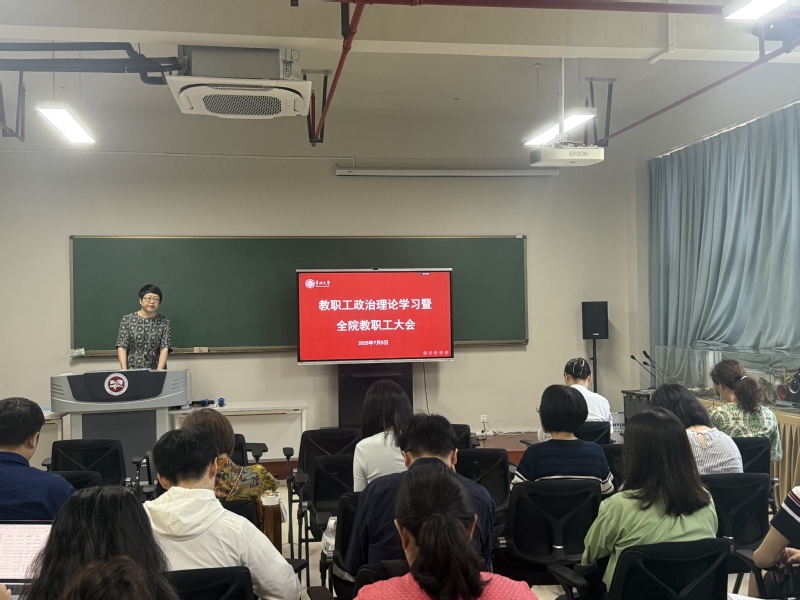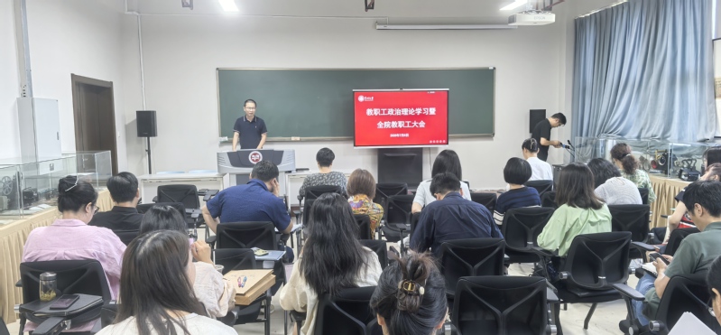 7月5日上午,吃瓜黑料 在立言楼342室召开教职工政治理论学习暨全院教职工大会,学院全体领导班子出席会议,全体教师参加会议,会议由院党委书记焦洁庆主持。