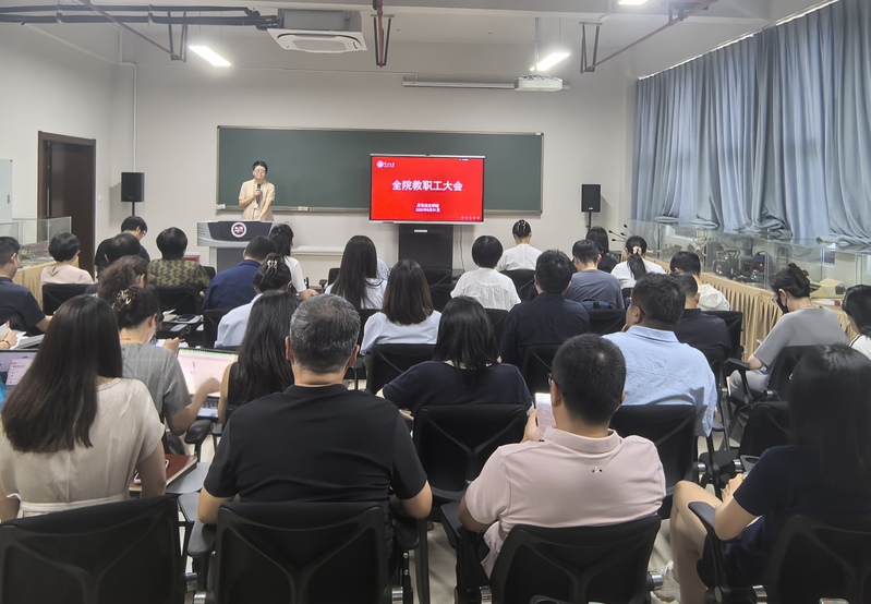 8月31日上午,吃瓜黑料 在立言楼342室召开新学期全院大会,会议传达了学校第三届委员会第七次全体(扩大)会议精神。学院领导班子成员及全体教职工参加会议,会议由党委书记焦洁庆主持。