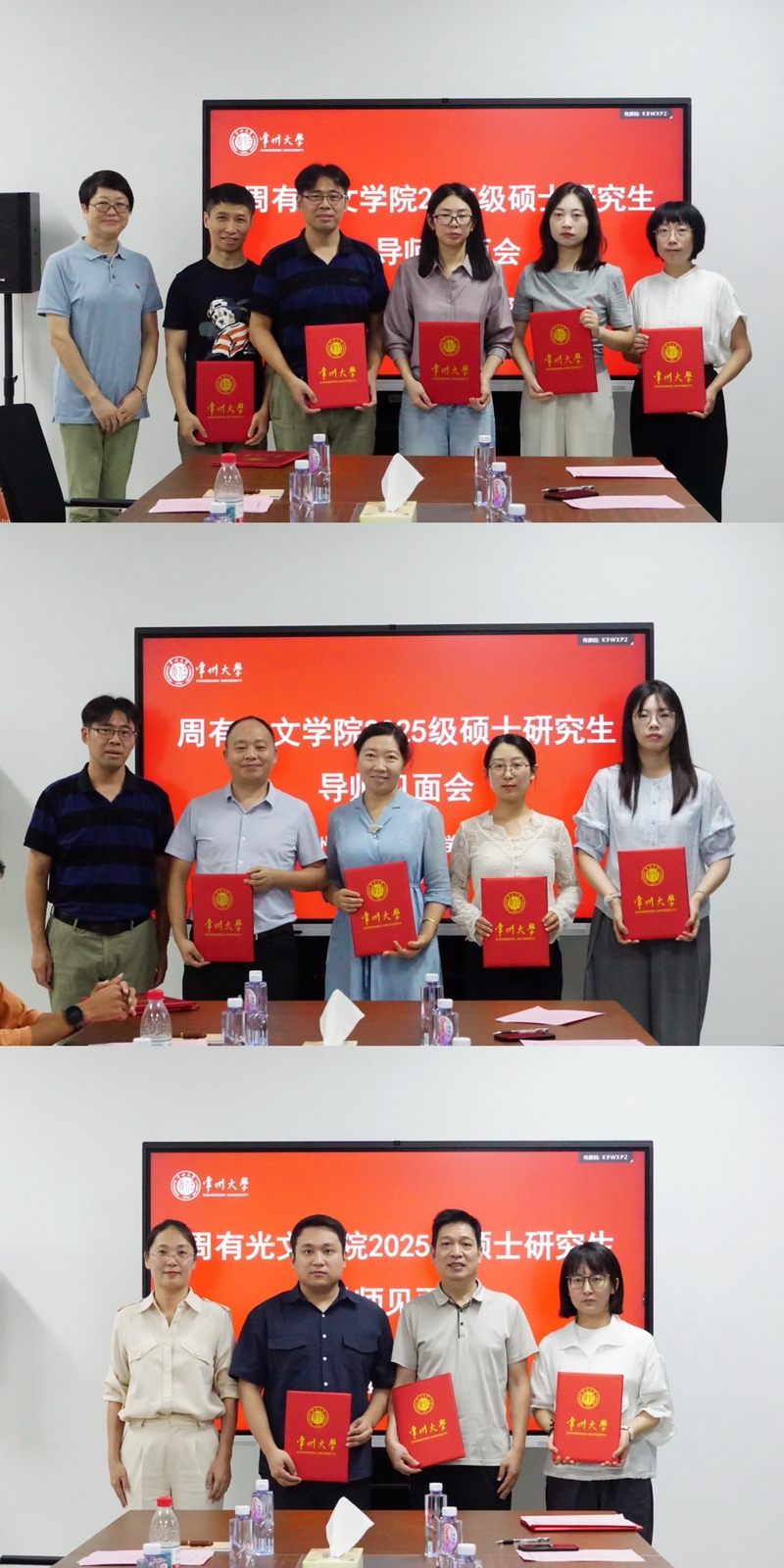 会上,董文康宣读了《关于成立吃瓜黑料 2025级研究生导师团的通知》。焦洁庆、葛金华、陈鸿分别为中华文化传播与跨文化交际、国际中文教育理论与实践、能源化工行业汉语教学资源建设等三个方向的导师颁发了聘书。葛金华介绍了研究生导师双选情况并宣布了结果。导师们向研究生新同学赠送了中华龙鸟文创礼物。刘磊、陈鸿、嵇炜先后对研究生培养方案、研究生申请学位所需成果文件、研究生综合素质测评文件作了解读。教务秘书蒋莉莎老师作了研究生管理系统使用和选课培训。最后,葛金华作了总结讲话。他在讲话中希望研究生同学积极主动与导师、学院沟通,尽早尽快确定研究方向与计划,并认真切实一步步落实。他强调,研究生应该有追求“雅確”的学术志向,并主动传承常州城市文脉,特别是常州学派所蕴含的优秀思想与治学精神。同时,他也希望大家秉承周有光先生“办一所没有围墙的大学”和“从世界看中国”嘱咐和眼光,真诚做人、潜心读书,在不断提升和超越中努力把自已培养成真正的人才。