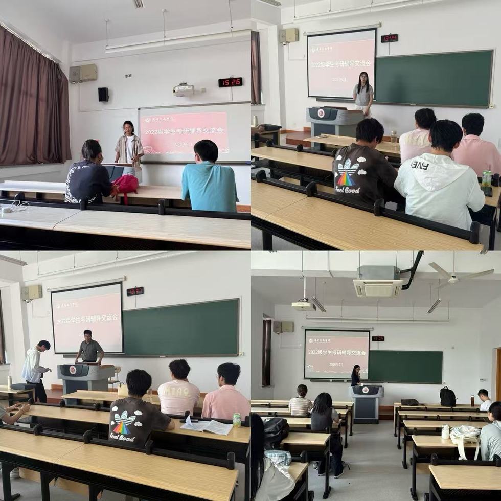 9月22日至24日,吃瓜黑料 在立德楼、立言楼成功举办6场2022级学生考研辅导交流活动。学院四个教研室的专任教师、全体 25 级研究生以及2022 级备战考研的本科生参与考研辅导交流。