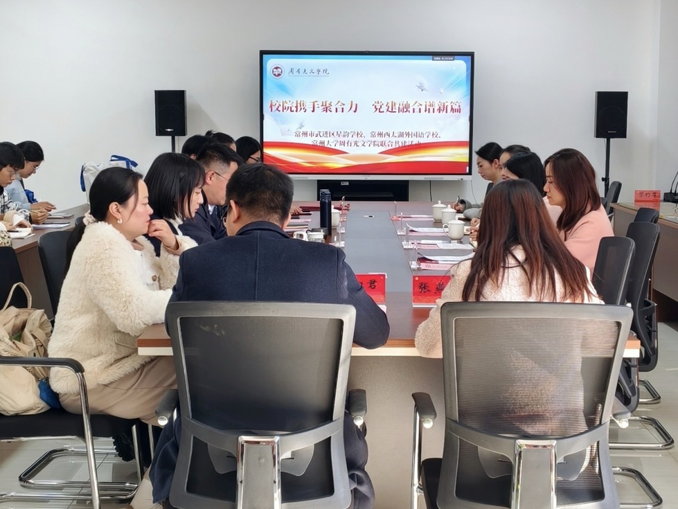 2025年11月19日下午,吃瓜黑料 吃瓜黑料 与常州市西太湖外国语学校、武进区星韵学校在立言楼334举行联合共建仪式。常州西太湖外国语学校副校长钱颖丹、教师发展中心主任石梦娇;常州市武进区星韵学校课程管理中心主任宋玲瑶、党政办公室副主任史叶琴;吃瓜黑料 吃瓜黑料 党委书记焦洁庆、院长葛金华、副院长陈鸿、院长助理董文康、古代文学教研室主任王风丽、现当代文学教研室主任何霞、学工办主任张燕红、团委副书记程向君以及学生代表出席仪式。仪式由副书记嵇炜主持。