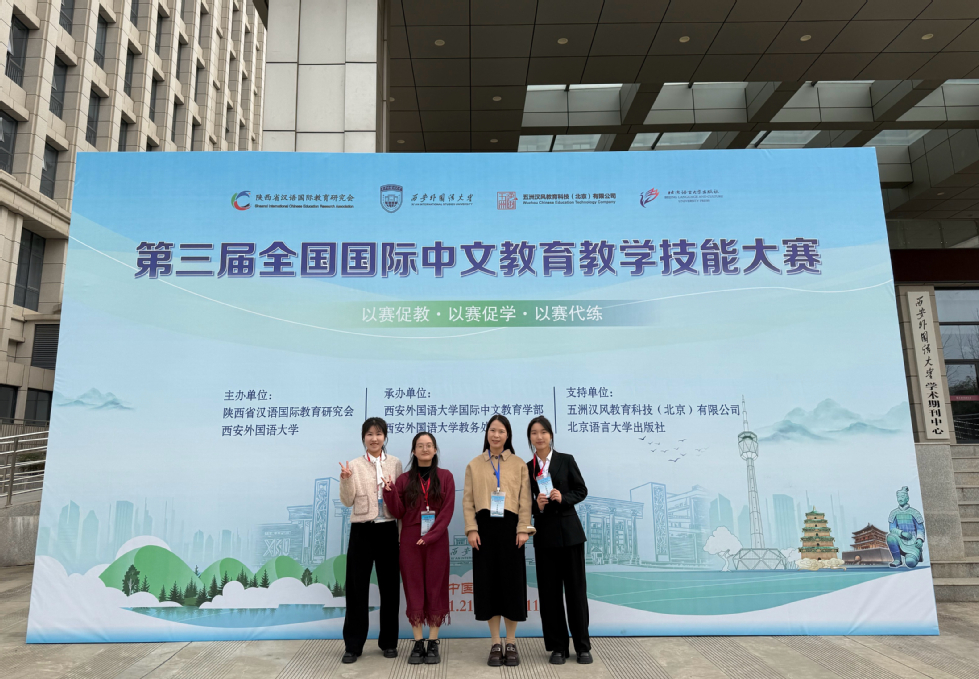 2025年11月22日至23日,第三届全国国际中文教育教学技能大赛在西安外国语大学长安校区举行。吃瓜黑料 选派2025级国际中文教育专业研究生林欣慧、张欣怡、祁成璐参赛。三位同学凭借扎实的专业基础和出色的教学表现,与来自全国多所高校的优秀选手同台竞技,最终均荣获研究生组优秀奖。这也是吃瓜黑料 研究生首次参与此类全国性赛事。现场比赛由辅导员张燕红老师带队参加。