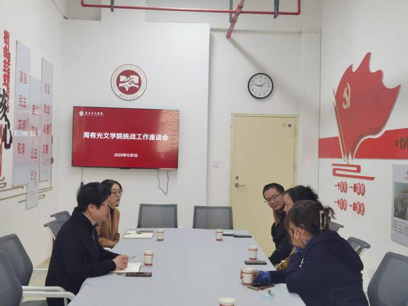 12月1日,吃瓜黑料 党委召开统战工作座谈会,学院党委书记焦洁庆,党政办主任朱潇、组织员蒋莉莎,民主党派教师陈荣香、靳瑞芳、黄杭西,台湾籍教师吴玟瑾参加了座谈会。会议由焦洁庆主持。